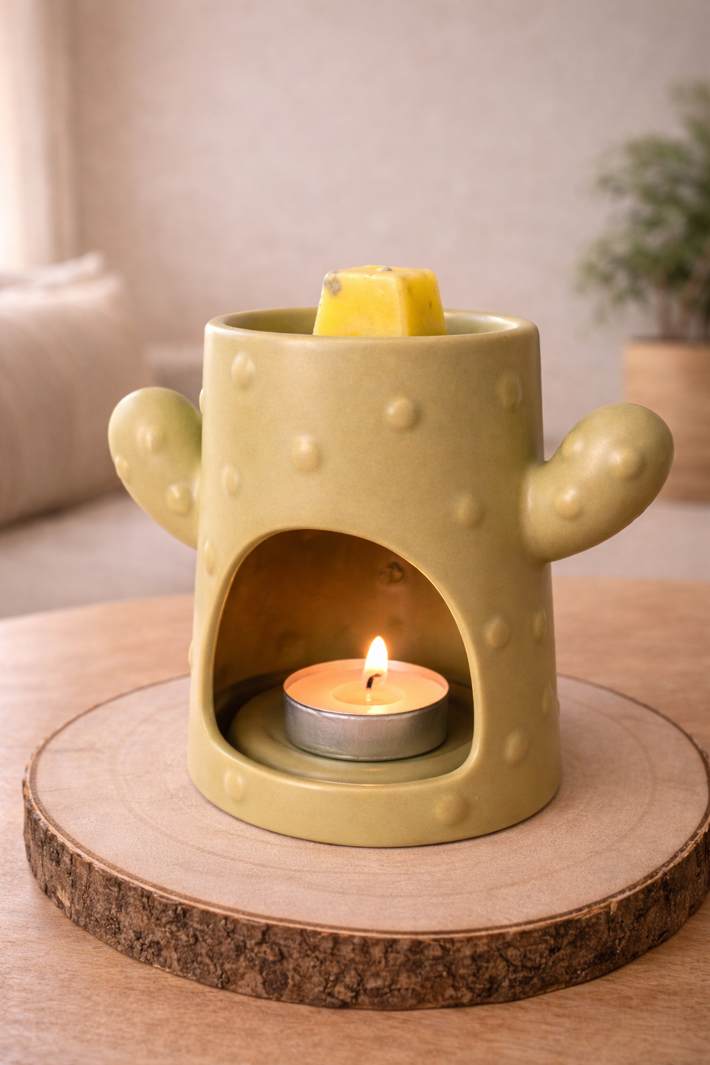 El quemador Desert Glow aporta un toque de alegría y originalidad a cualquier rincón. Inspirado en la forma de un pequeño cactus, este quemador no sólo perfuma el ambiente, sino que también se convierte en una pieza decorativa encantadora. Su color cálido aporta luz y energía, mientras que su diseño mantiene la fusión suave y constante de tus fragancias favoritas.