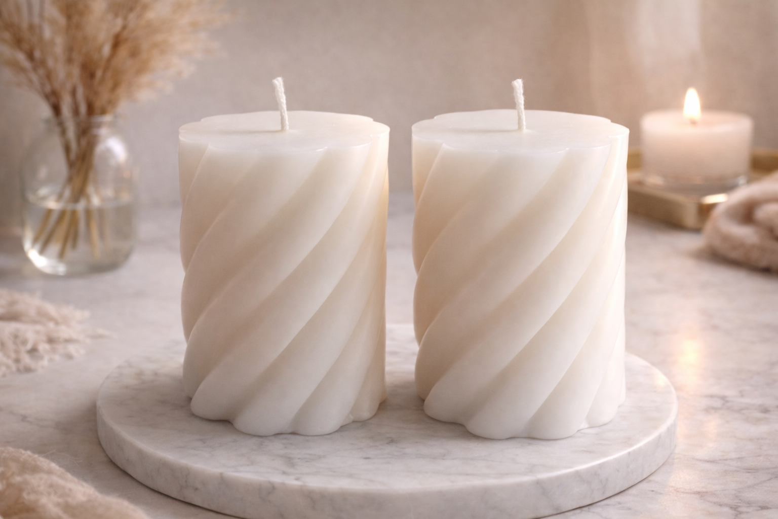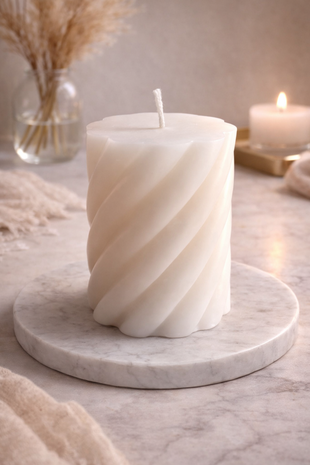 La Soft Spiral es una vela decorativa artesanal de líneas suaves y movimiento en espiral, elaborada en cera vegetal y acabada en un delicado blanco nacarado que aporta calma y elegancia a cualquier espacio.
