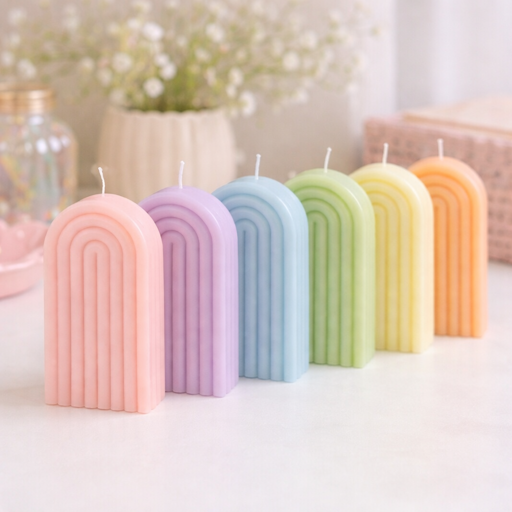 Añade un toque de luz suave a cualquier espacio con nuestras velas decorativas Arcoíris Pastel, elaboradas a mano con cera de soja y tonos delicados que aportan calma y armonía visual. Su diseño en capas y líneas curvas crea un efecto moderno y acogedor perfecto para decorar estanterías, mesas o rincones especiales.
