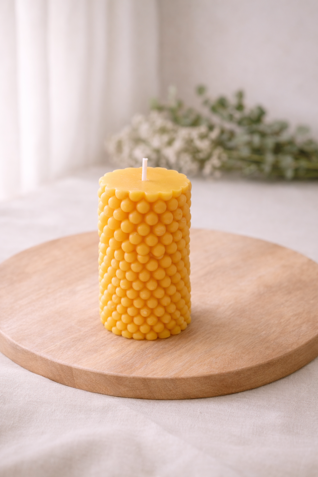 Elaborada a mano con cera vegetal, se derrite de manera limpia y ofrece una luz suave que invita a la calma.